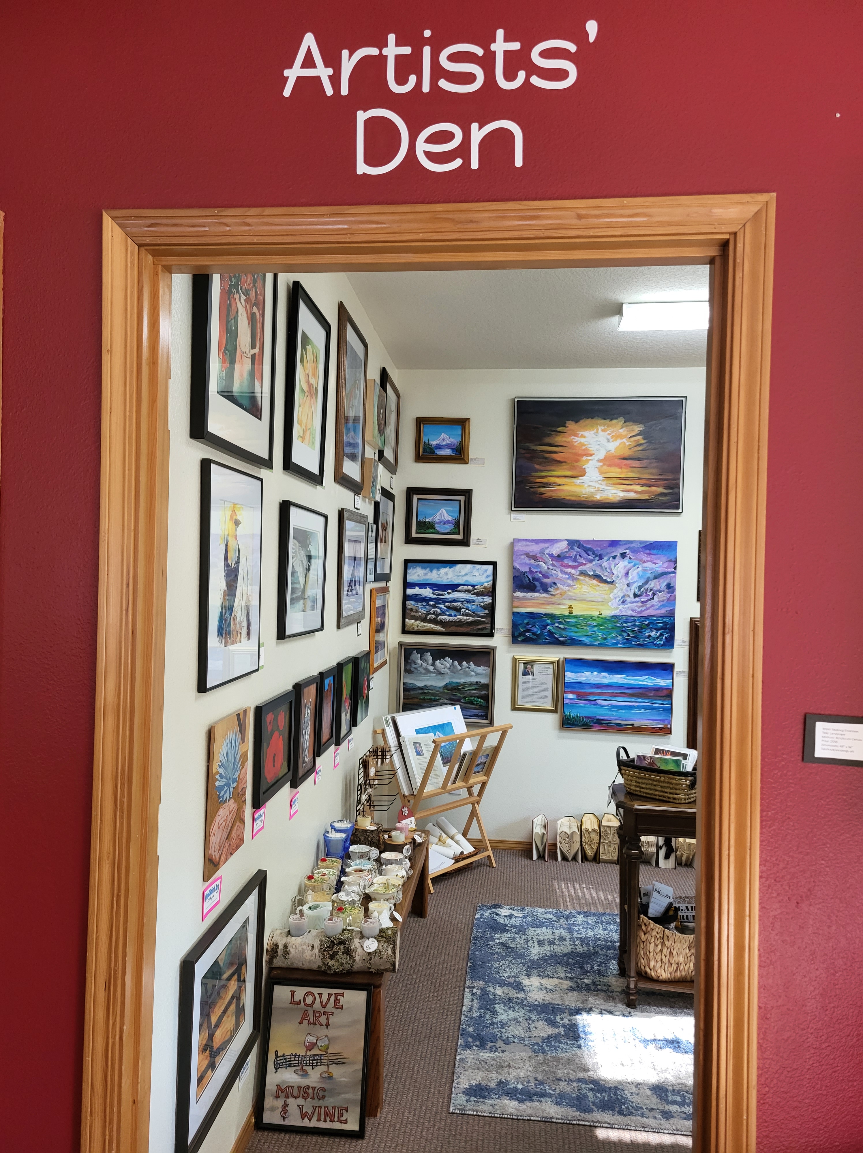 Try our loose leaf tea from Big Heart Tea Co, pour over coffee by our friends at Protagonist coffee, alcohol free wines, beer, and mocktails. We also offer small plates featuring Mt. Hood Baking Co breads, to go charcuterie favorites from our charcuterie cooler, sweet treats such as local and import hand crafted chocolates, and we always welcome outside food. Our neighboring restaurants have some wonderful options! Take a walk through our local artist den, or snag a puzzle or board game from the bookshelf while you unwind.